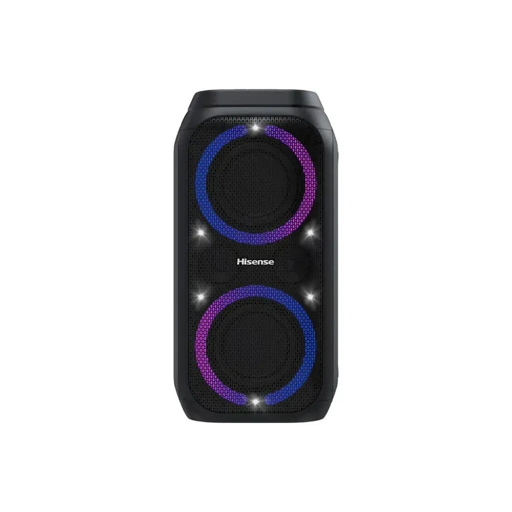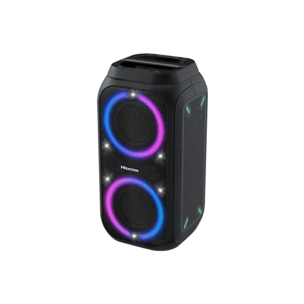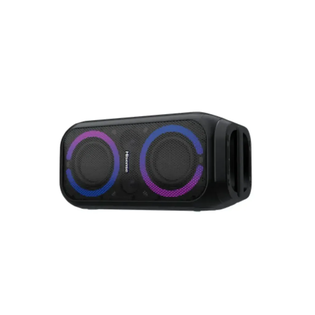 With the Hisense 160W Party Rocket Portable Speaker, you can elevate your party experience, designed for those who want to bring the music, the lights, and the fun wherever they go. You can enjoy up to 12 hours of long-lasting playtime, this powerful speaker ensures the good times keep going all day or night.