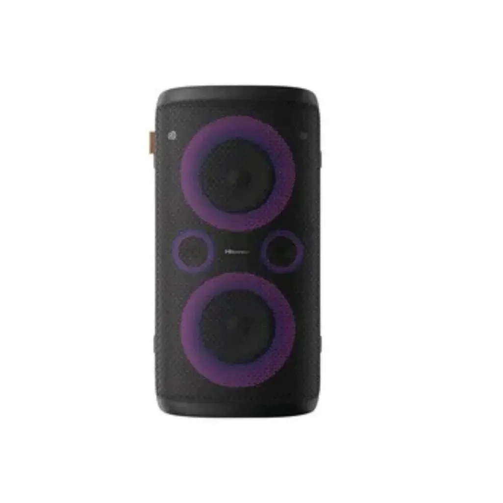 With the Hisense Party Rocker Portable Speaker, you can unleash the ultimate party experience. Packed with 300W max audio power, this speaker delivers booming bass and crystal-clear sound, powered by built-in 2 subwoofers and 2 tweeters for a full-range audio experience. Whether you're hosting a party, karaoke night, or just vibing with friends, the Hisense party rocker ensures your music sounds great.