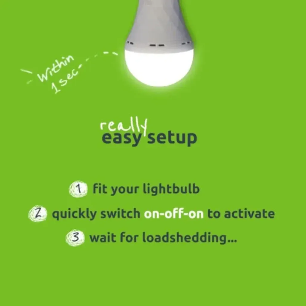 The brightness can be manually adjusted between 3 pre-configured settings, during load shedding. At the 25% brightness setting, the bulb can sustain up to 5 hours of additional use, when it is at 50% brightness setting, you can get up to 3 hours of use, and while the bulb is at the 100% brightness setting, you can get up to 1.5 hours of additional hours of use.