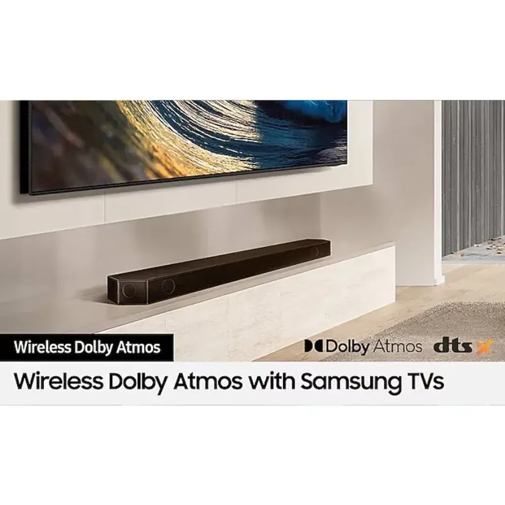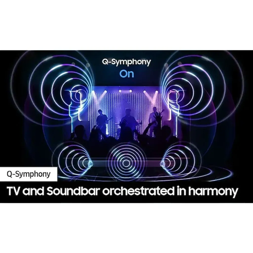 The Samsung 11.1.4 CH Q-Series Soundbar will create a powerful, immersive gaming experience to enhance the scene, by automatically optimising your sound for gaming when it detects a console is connected to the Samsung TV. Plus, it will optimse specifically for the genre in Samsung TV's gaming hub.