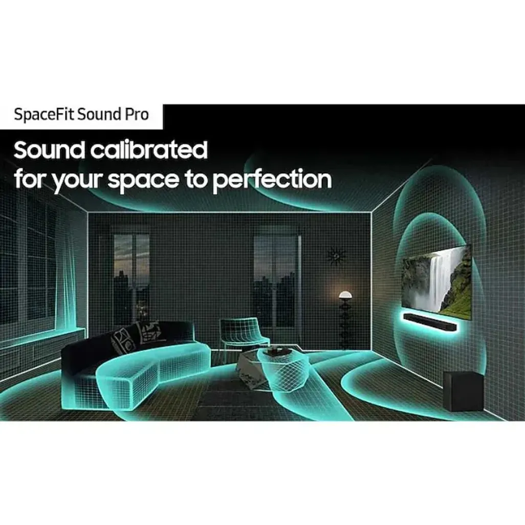 This 11.1.4 channel soundbar features SpaceFit Sound Pro, which will create clear and immersive sound, by optimising your audio to match your space, and it will fuse the heightened clarity and immersion with a dose of optimised bass.