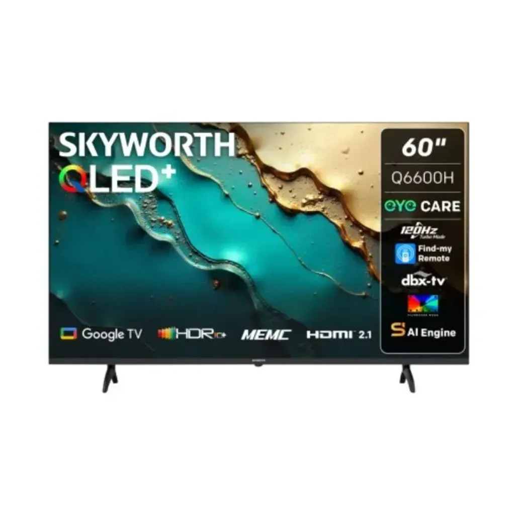 Experience the future of home entertainment with the Skyworth 60 Inch QLED Google TV, a stunning 60 Inch QLED TV designed to immerse you in breathtaking visuals and vibrant colour. Featuring a 4K resolution with a smooth 120Hz refresh rate, where every scene comes alive, whether you’re streaming movies, gaming, or watching live sports. The HDR10+, HDR10, and HLG visual features ensure deeper contrasts, brighter highlights, and lifelike visuals that put you right in the action.
