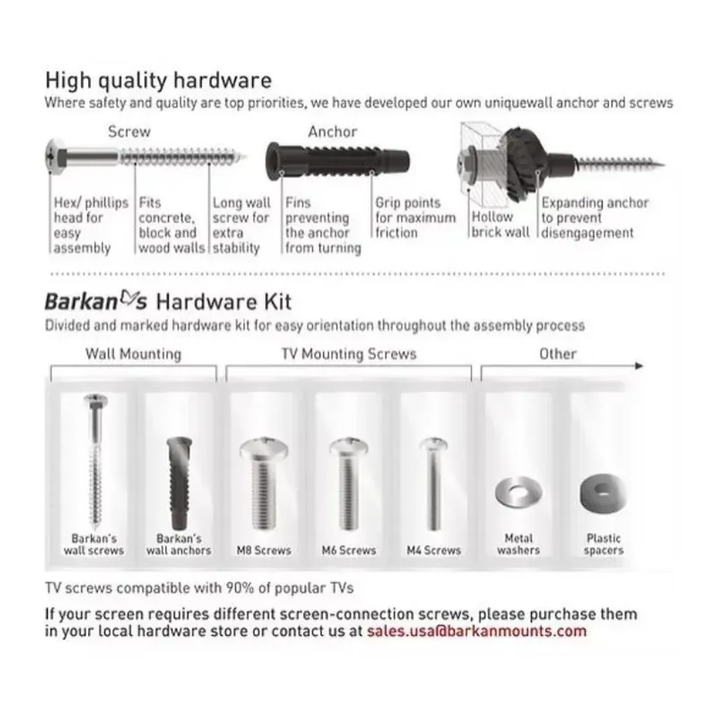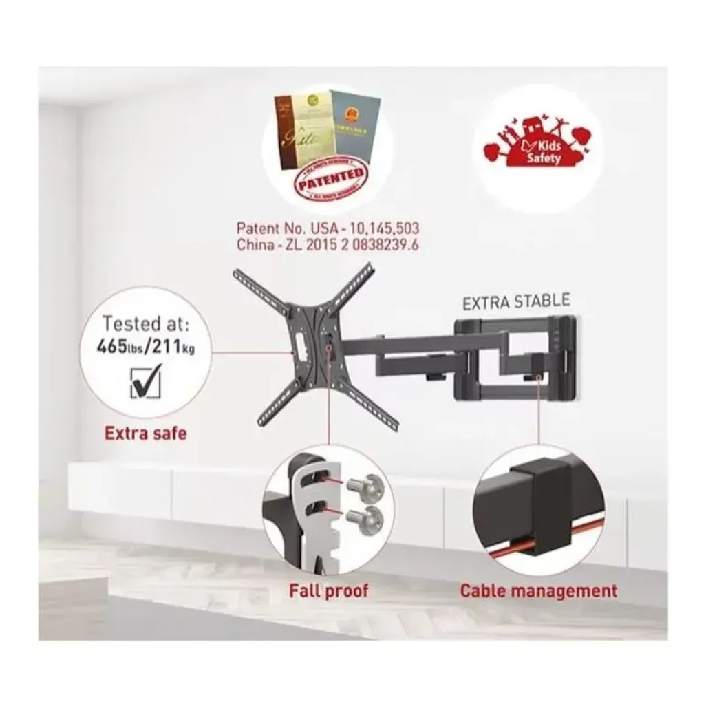 Choose the angle of your TV with the Barkan 13" - 90" Full Motion TV Wall Bracket. Not only does this bracket ensure child safety, but the bracket is also suitable for installation in the corner of a room. You can install the bracket to a height that will suit the whole family. A patented mechanism is added to fit various screen types and screens with a special back structure.