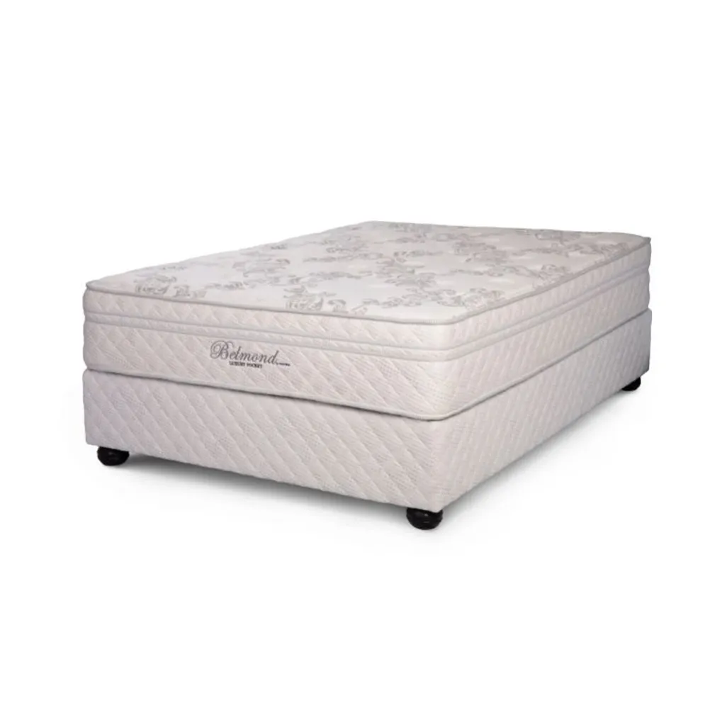 The Truform Belmond Luxury Pocket Double Bed Set Extra Length has a superior high quality spring mattress. It offers a 25% higher than average coil count. Pocket springs are compression tested and individually sewn into a fabric pocket, for extended durability, comfort, and strong support. In addition, it features Motion Separation Technology for a good night's rest.