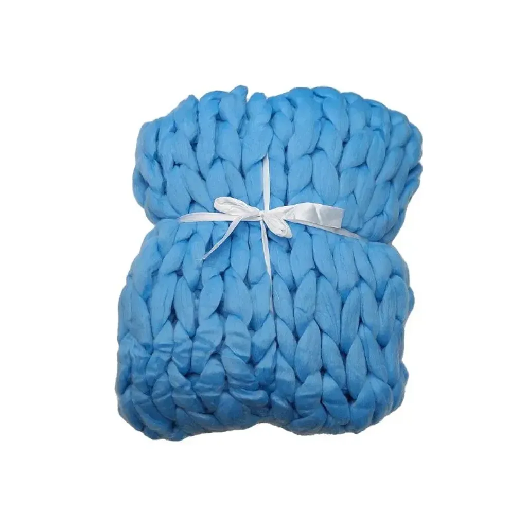 Whether you want a completed bedding set or just require extra warmth during the cold winter months, blankets are essential for any household. The Home4U 100x150 Blue Chunky Woolen Blanket is super soft and will keep you warm and snug. It is a chunky hand-knitted blanket that is made from super jumbo chenille yarn.