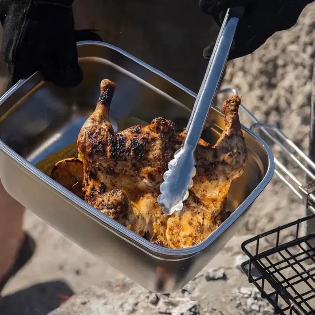The MDS 2.8L Braai Bak is made from food-grade stainless steel and environmentally friendly food-grade silicone that is BPA-free. It features silicone strips to seal and close the braai bak, and there is a silicone vent that you can use to quickly squeeze out excess air and keep food fresh.