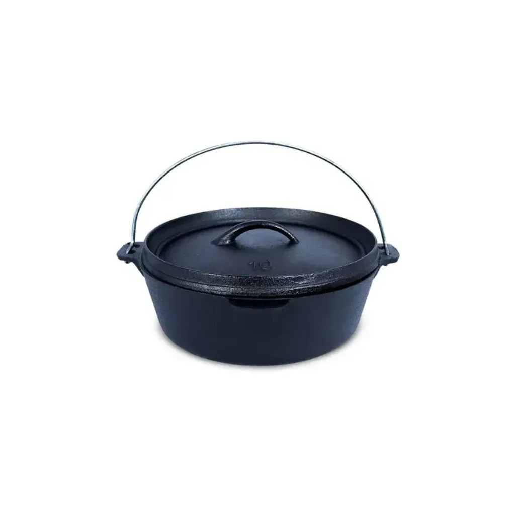 The Megamaster NO10 Flat Pot has a capacity of 3L, is made of cast iron for durability, and has high heat retention. Includes a lid and carry handle for ease of use, and it is perfect for making stews, sauces and baking fireside bread.