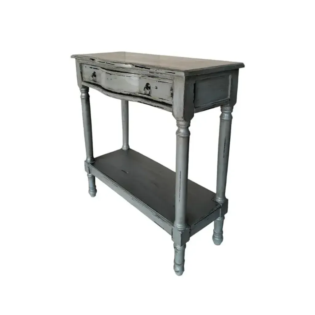 Add a touch of vintage and regal decor to your living space with the Lola Grey Distressed Console. Simple in design with one drawer for storage, and a grey distressed finish as well as ample display space.