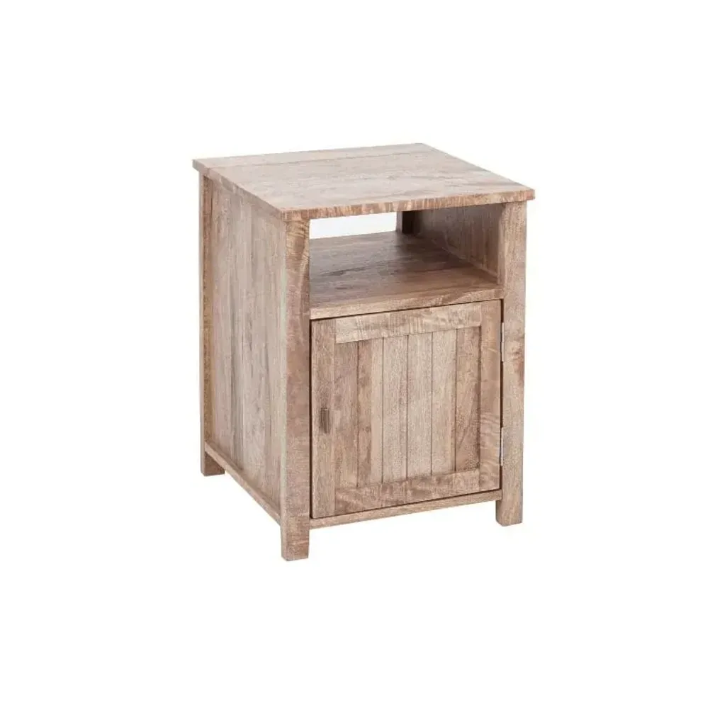 The Palma Pedestal Right Hand Hinge is a beautifully crafted piece made from mango wood, showcasing its natural grain and warm tones.