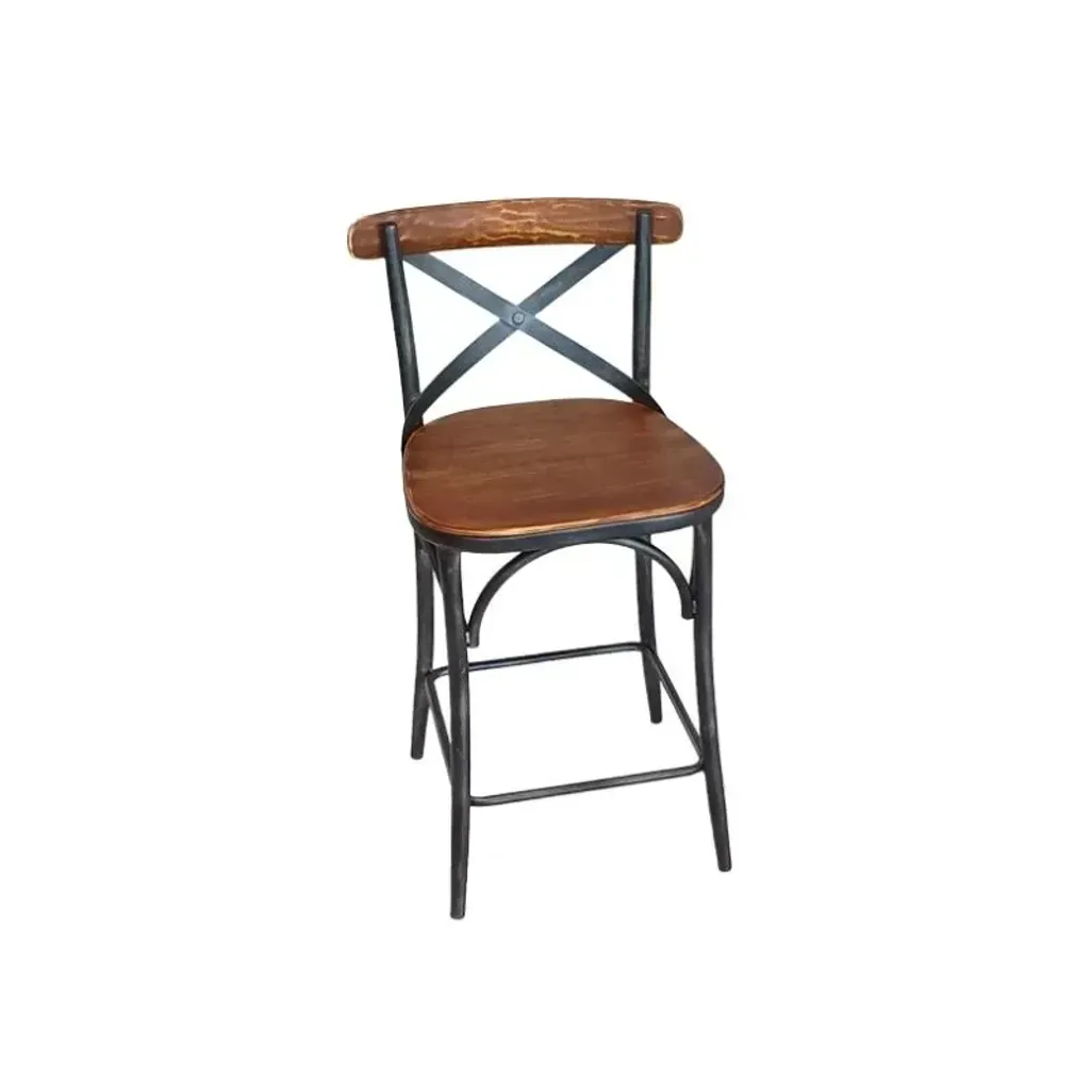 The Rustic 65cm Bar Chair has a black metal frame and pine backrest and seat. You can comfortably rest your feet on the metal footrest.