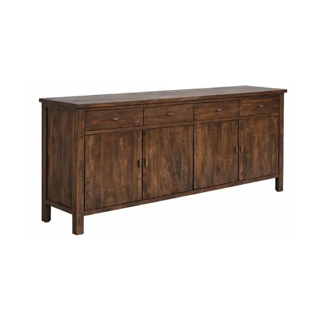 The Palma 2m Antique Brown Sideboard is a versatile piece of furniture, traditionally used in dining rooms, but can be used in living rooms, hallways, and entryways to add to your living space. It consists of 4 drawers and 4 cupboards, and it provides additional storage and easy accessibility for cutlery, linens, electronics or items you want to hide in plain sight.