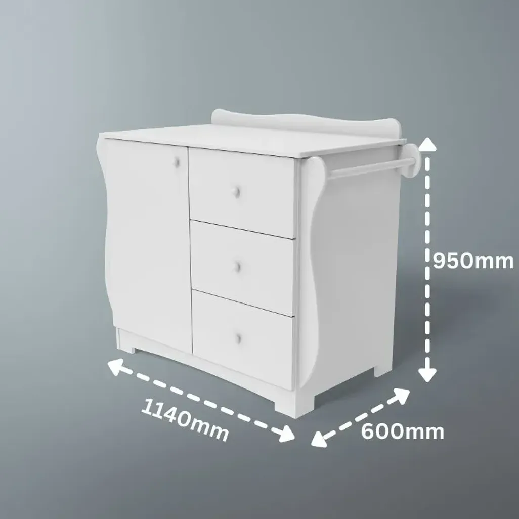 A compactum is similar to a chest of drawers, however, it is designed for a nursery, as it is built at the best height for parents. You will be able to change your baby without needing to bend your back. In addition, you can place your baby's bath on the top of the compactum, thus allowing you to wash your child without causing back pain. There is a towel rail as well, for you to hang your child's towel or toweling nappy.