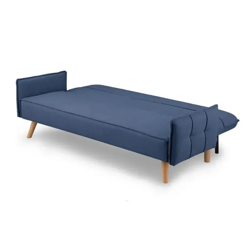 The Dexter Blue Fabric Sleeper Couch is a dual couch as well as a sleeper bed. Once fully opened as a bed it fits similarly to a three-quarter bed in size so it can sleep two people. Additionally, the Dexter Blue Fabric Sleeper Couch has a Click Clack Double Back Mechanism to assist in moving the couch into a bed and the couch also has two extra metal legs for sturdier support. With a soft touch blue fabric and natural wooden legs, this sleeper couch will easily suit your needs.
