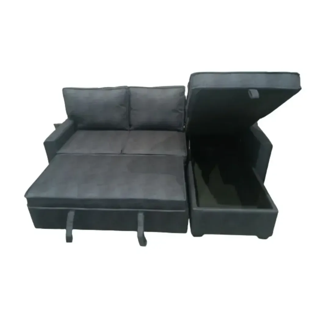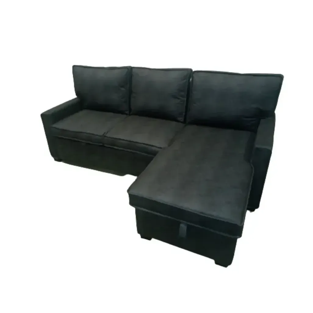 The Hannah Dark Grey Sleeper Couch is a dual couch as well as a sleeper couch, it is a sectional sofa and chaise which also has storage space that can be used during the day time when your couch is functional or at night when your guests use the Hannah Dark Grey Sleeper Couch as a bed. Once fully opened as a bed it fits similarly to a double bed in size so it can comfortably sleep two people. The chaise is interchangeable and can be placed on the left or right side of your couch dependent on the layout of your room.