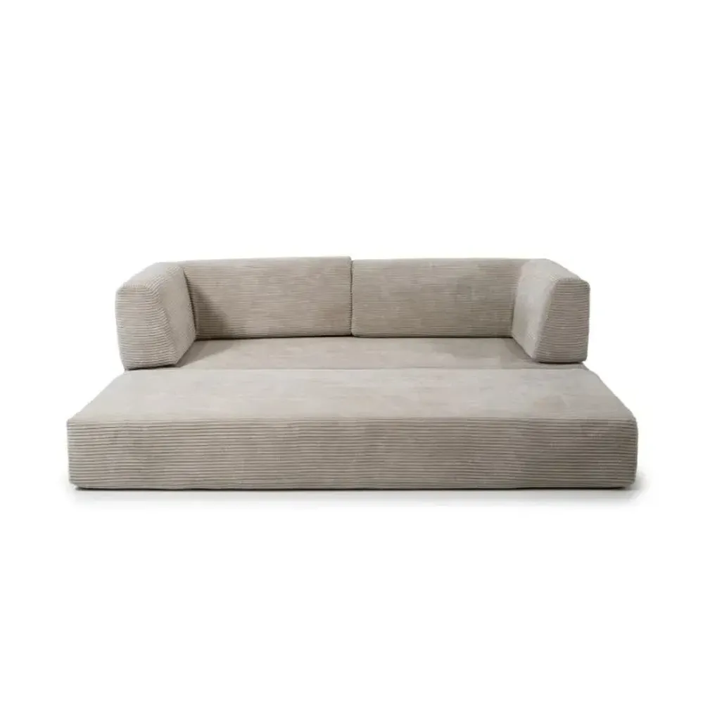 The Spongebob Sleeper Couch is a stylish and versatile lounging solution, with fibre-filled back cushions for luxurious comfort, perfect for those living in small spaces or multifunctional rooms. It is designed to shift effortlessly from a contemporary sofa to a comfortable double bed, and it offers the ideal balance of practicality and comfort for guests. Its sleek finish adds a touch of modern elegance to any home. Manufactured from high-density foam and is 100% polyester with a rub count of 100,000. It is available in grounded beige and light brown.