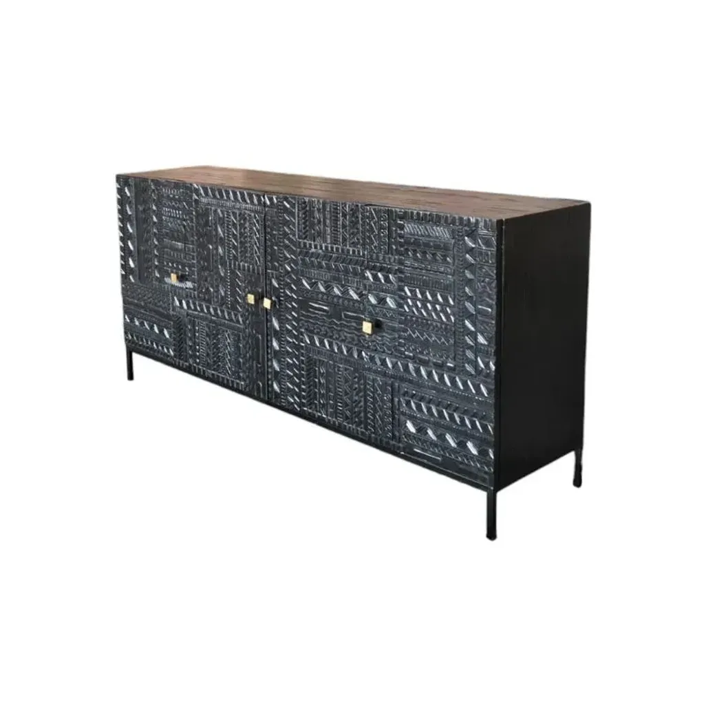 A plasma unit does more than give you a better viewing angle, it can provide additional storage space. The Samarinda Plasma Unit has a teak matt black finish, and it features an intricate dark patterned front that will add a touch of artistry to your entertainment area.