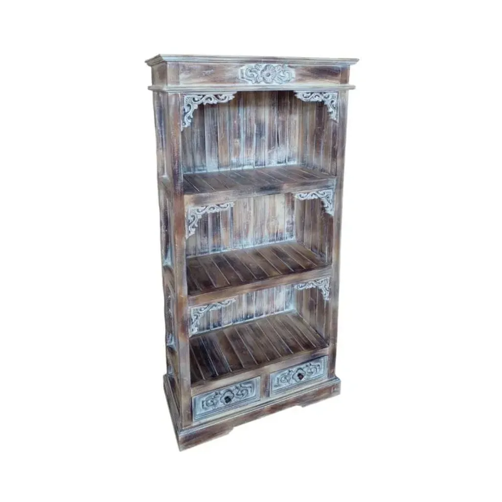 Allow for a vintage and classic touch to add character to your space with the Barton 1.8m White Wash Bookcase. Made with Mahogany wood and has beautiful floral detailing on the door as well as a natural brown finish with a touch of whitewash. This bookcase will add character to your living space no matter where you choose to place it in your home.
