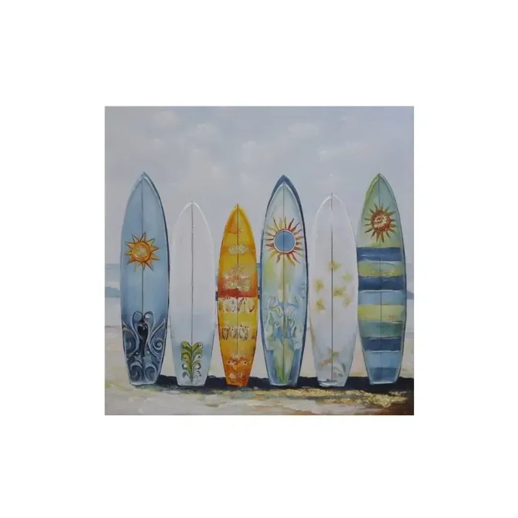 This Hii Surf Boards Canvas Oil Painting presents a lovely mix of colours. The mixture of colours used for the surfboards is a perfect combination. This painting would be perfect for you if you enjoy surfing. 750mm x 750mm.