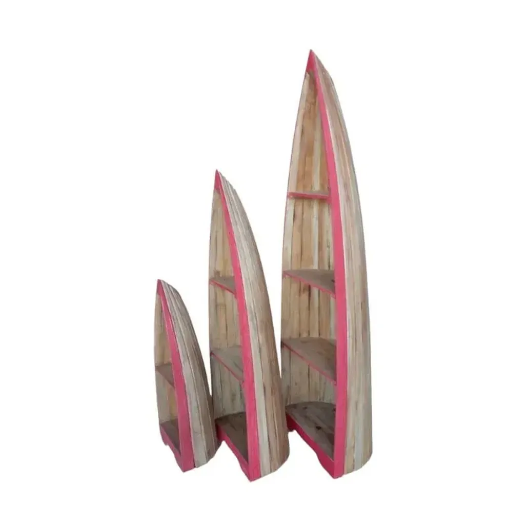 Do you have a nautical theme in mind for your home or does the thought of faraway lands and seascapes tickle your fancy? Allow for some character in your living space with the Rainer Bookshelf Display Set of 3. Whether you decide to use it as a bookshelf or as a display, the set of 3 comes in varying sizes within the set. Made with mahogany wood with a natural wood finish and red trim to accent the edges, the boat-shaped bookshelf display will add a wonderful feature point to whichever room you decide to add it in.