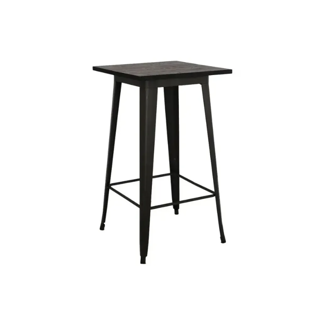 The Maverick Bar Table is a small and compact table ideal for an intimate entertainment gathering. Made with metal legs and Elmwood, this table with its sturdy design will serve its purpose and fit seamlessly in with your home with its dark brown colour. The table and accompanying chairs all have rubber feet to not spoil your floors and with its size, it's perfect for any small nook area. Lastly, for added comfort, the Maverick Bar Table has a backrest and footrest.