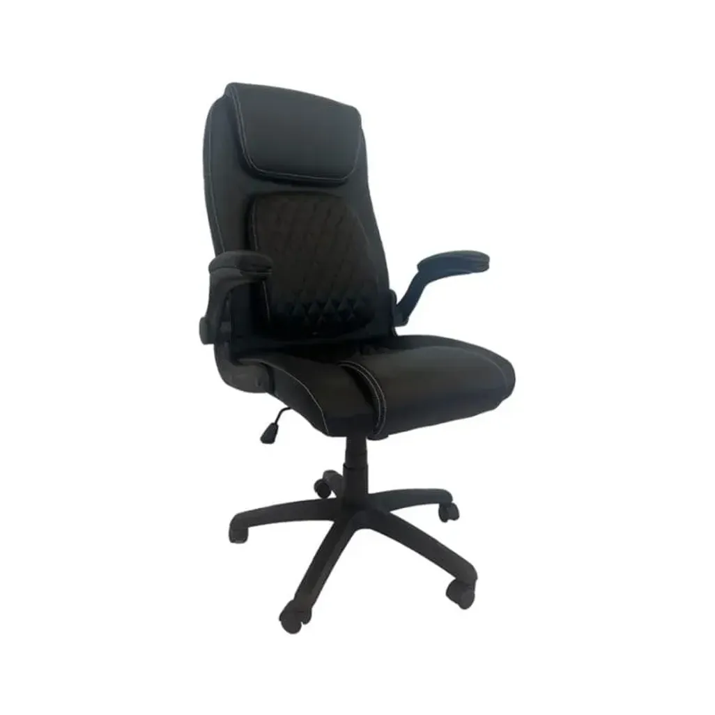 The Rhodes High Back Black Office Chair is crafted from durable, stain-resistant PU leather and features adjustable armrests and lumbar support to customize your comfort throughout the day. Max weight of 130kg.