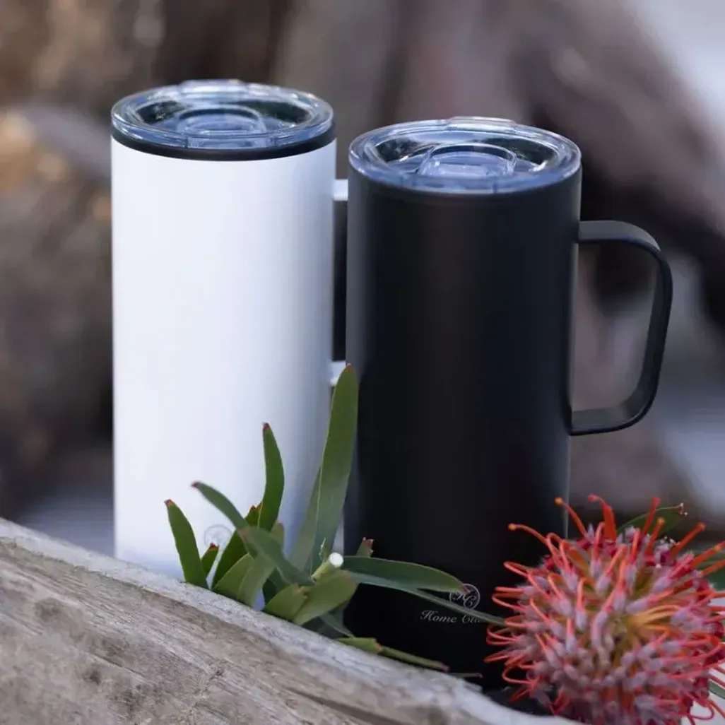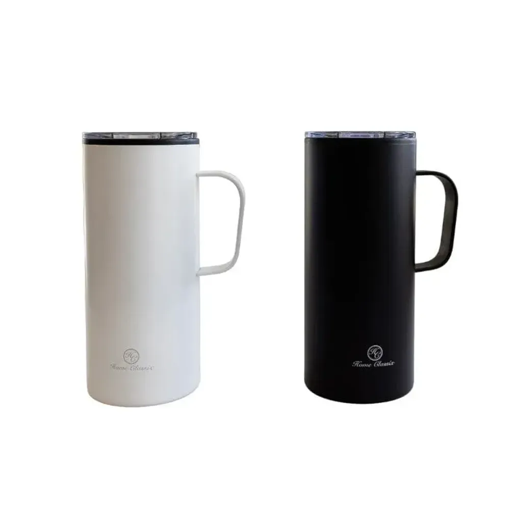 Travel mugs are reusable, reduce waste, and they will keep your beverage at the right temperature for longer. The Home Classix 670ml Tall Travel Mug is a powder-coated stainless steel travel mug. This travel mug features a carry handle, and it will fit snugly into the cup holder of your car.