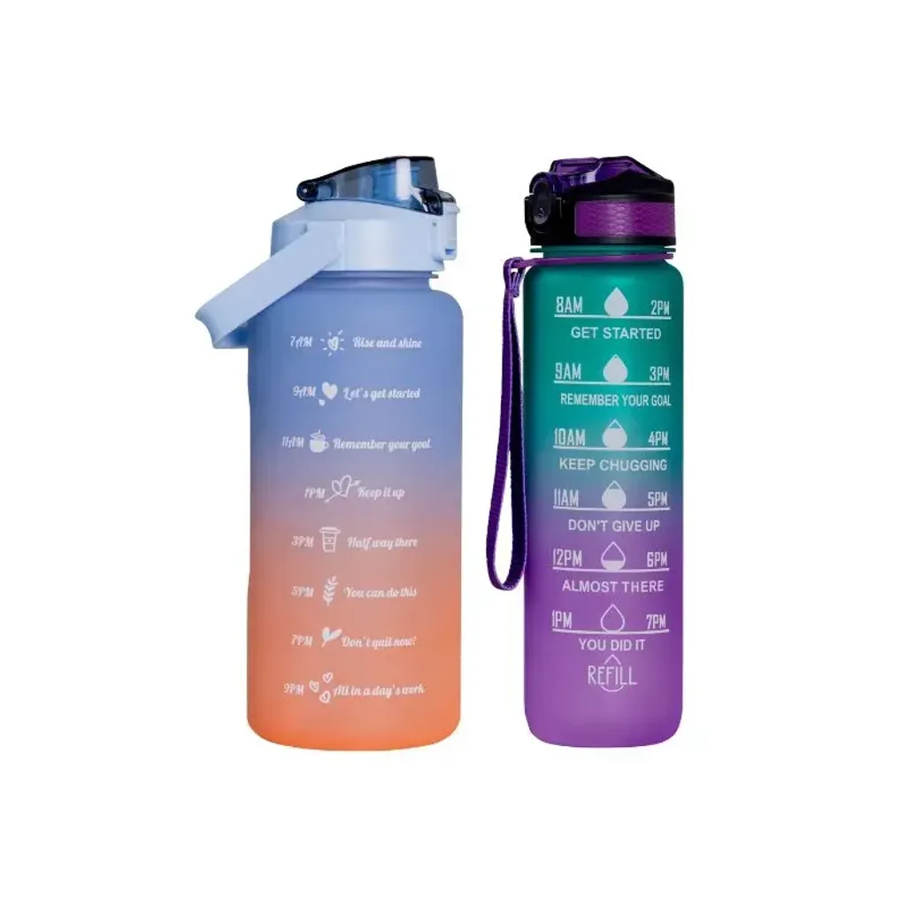 The Home4U Motivational Bottle Set consists of a 900ml motivational water bottle and a 2000ml water bottle, which has an ombre colour design and there are motivational quotes that will encourage you to drink your daily water intake.