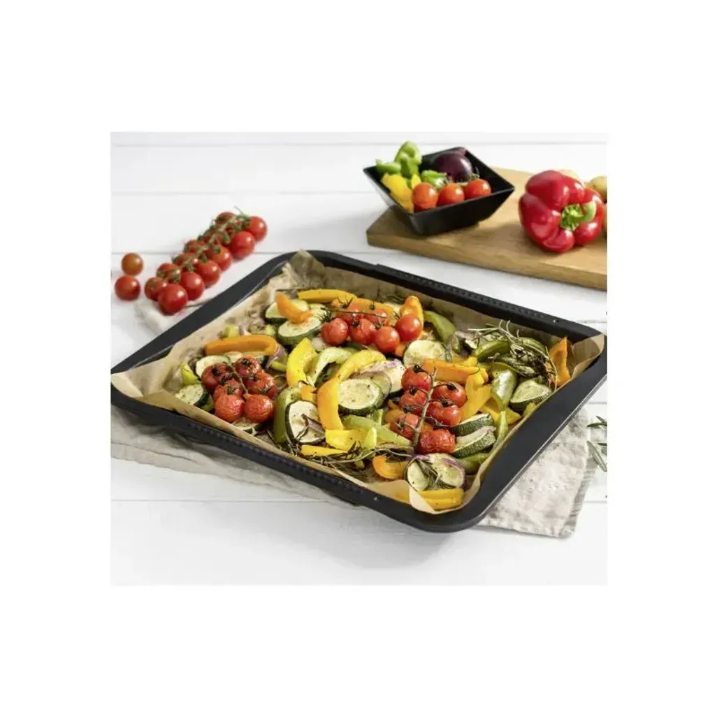 Prepare tasty biscuits, cookies, cakes and pizzas with this Zenker Universal Extendable Baking Tray. This tray can extend from 35.5cm to 52cm. It features a heat-resistant, non-stick surface. This tray can easily be cleaned by hand.