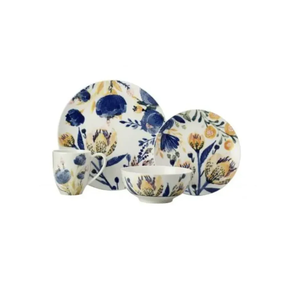 The Maxwell & Williams Fiorella 16 Piece Coupe Dinner Set consists of 4 mugs, 4 bowls, 4 side plates, and 4 dinner plates. This beautiful set is oven and microwave safe, and it is dishwasher-safe, and it is perfect for any household.