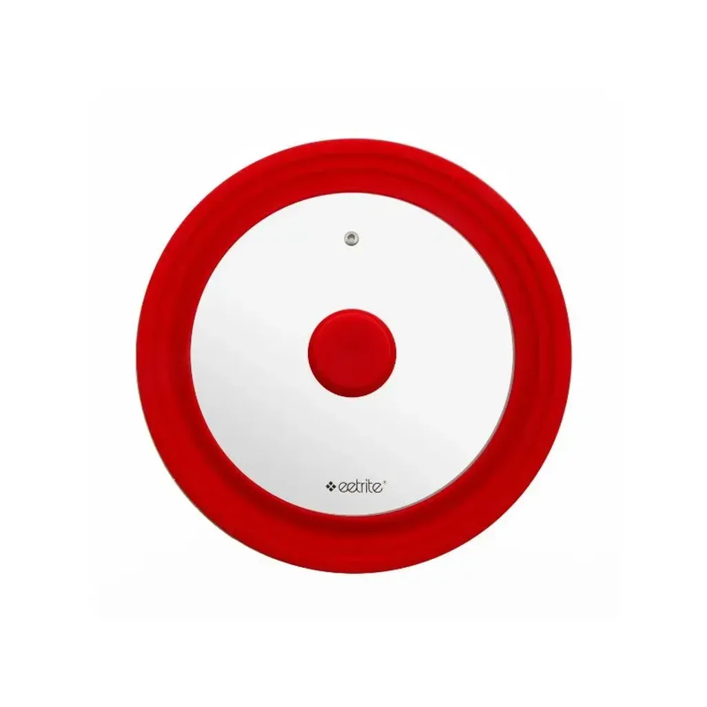 Nothing is more frustrating than the drawer full of pot lids but not finding the one you need to fit. Now with the Eetrite Multi Lid Red, you can easily fit a range of cookware for the ultimate kitchen convenience. The tiered rim fits 24cm, 26cm and 28cm pots, pans and any other cookware and has a steam vent and a stay-cool handle. Made from shock-resistant tempered glass and heat-resistant silicone it is dishwasher safe and your perfect answer to avoid a draw full of lids with no matching pots or pans.