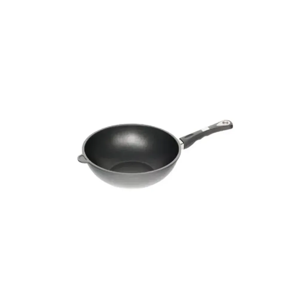 The AMT wok has a removable long handle which comes in handy when your wok needs to be stored after use but also adds to your safer cooking experience. The wok is heat resistant up to 240 °C, the removable handle is heat-resistant up to 150 °C.