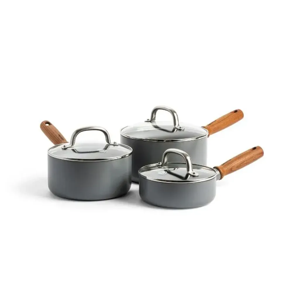 Create delicious meals for your family with the Green Pan Mayflower Pro 6-Piece Set. The set consists of a 16cm, 18cm, and 20cm saucepan, and three lids. Features cookware that is suitable for all hobs.