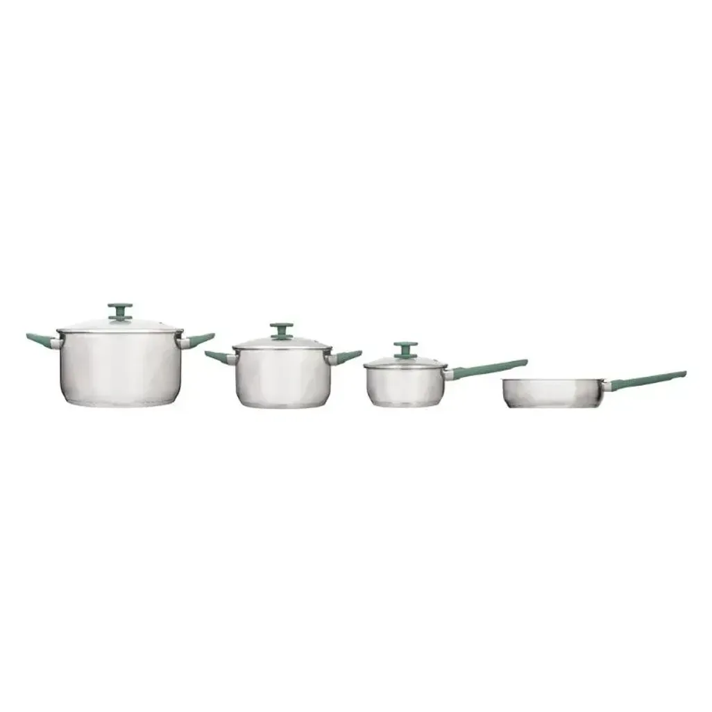The Legend Isabella 7 Piece Chef Cookware Set is a dream come true for every chef. The set features a 16cm, 20cm and 24cm casserole pot with a lid, along with a 24cm frying pan. Crafted from stainless steel, featuring tempered glass.