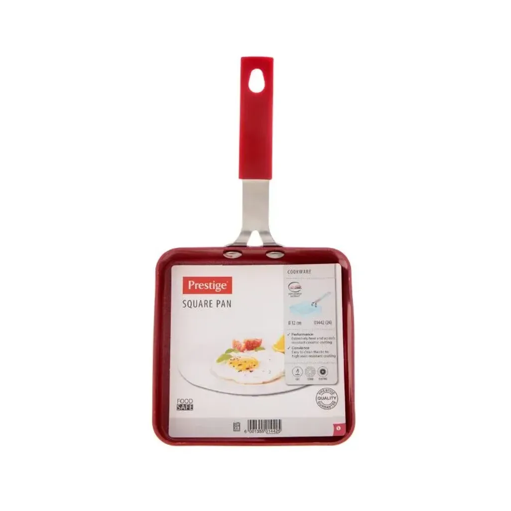 Fry up culinary delights with the Prestige Square Frying Pan, created with steel and a silicone handle. With a heat and scratch-resistant ceramic coating for ease of use and cleaning.