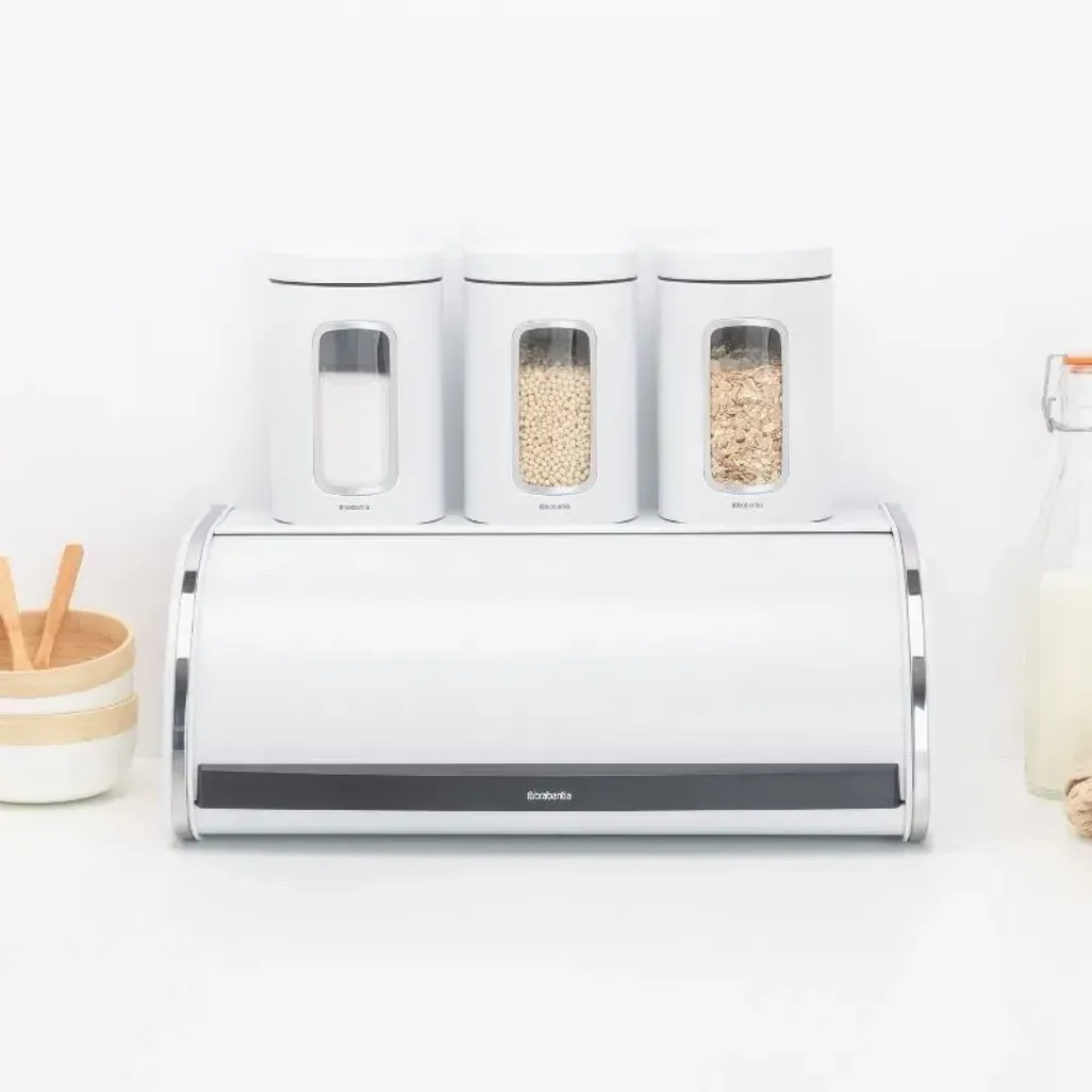 One of the best ways to store bread is to keep it in a bread bin. A bread bin extends the shelf life of bread and baked goods, such as bagels and muffins. The Brabantia White Roll Top Bread Bin will save space, as you can place canisters on top of it. It has a large grip, for easy opening, and the base has a knobbly pattern for proper ventilation.