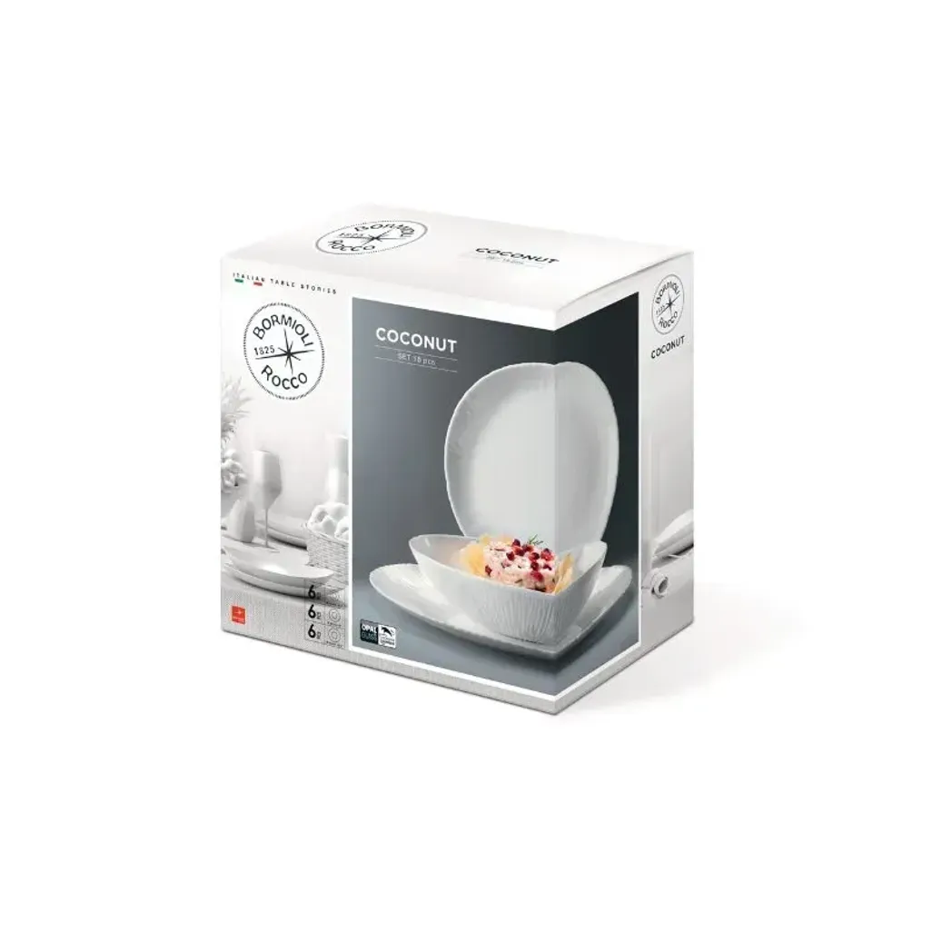 The Bormioli Rocco Coconut Tavola 18 Piece Dinner Set is made in tempered opal glass - synonymous with hygiene, resistance to liquids, high impact resistance, and ease of use. It can be used for a sophisticated dinner party or function, or a relaxing evening around the dining table with your loved ones. This set is both microwave and dishwasher-safe.