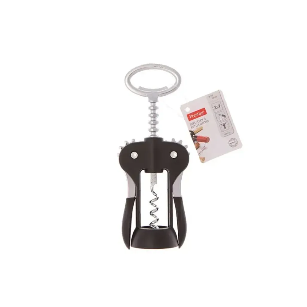 The Prestige Winged Corkscrew is a popular bottle opener that has two levers and a circular rim that is placed over the lip of the bottle which will require less effort than normal bottle openers.
