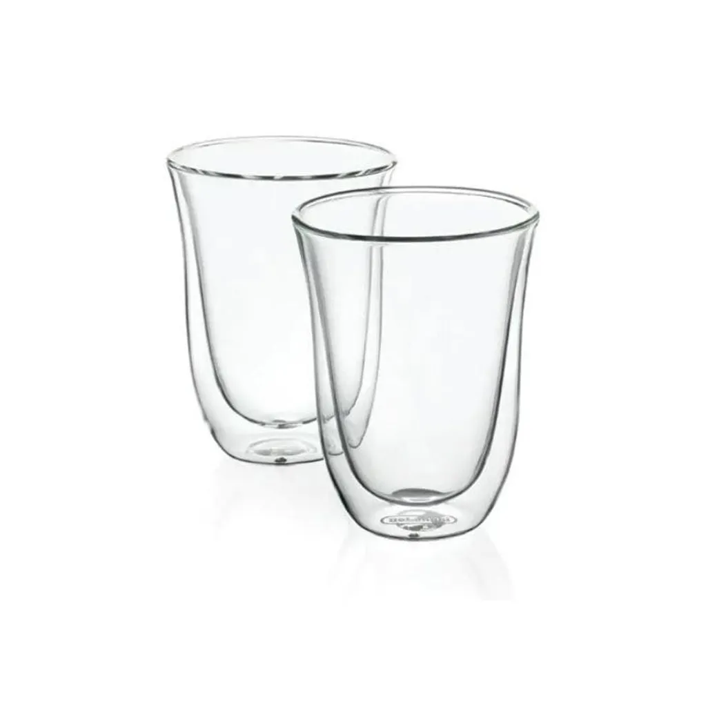 Delonghi Macchiato Glasses set consists of double-wall thermal glasses that are dishwasher safe and will hold up to 220ml of a hot or cold beverage.