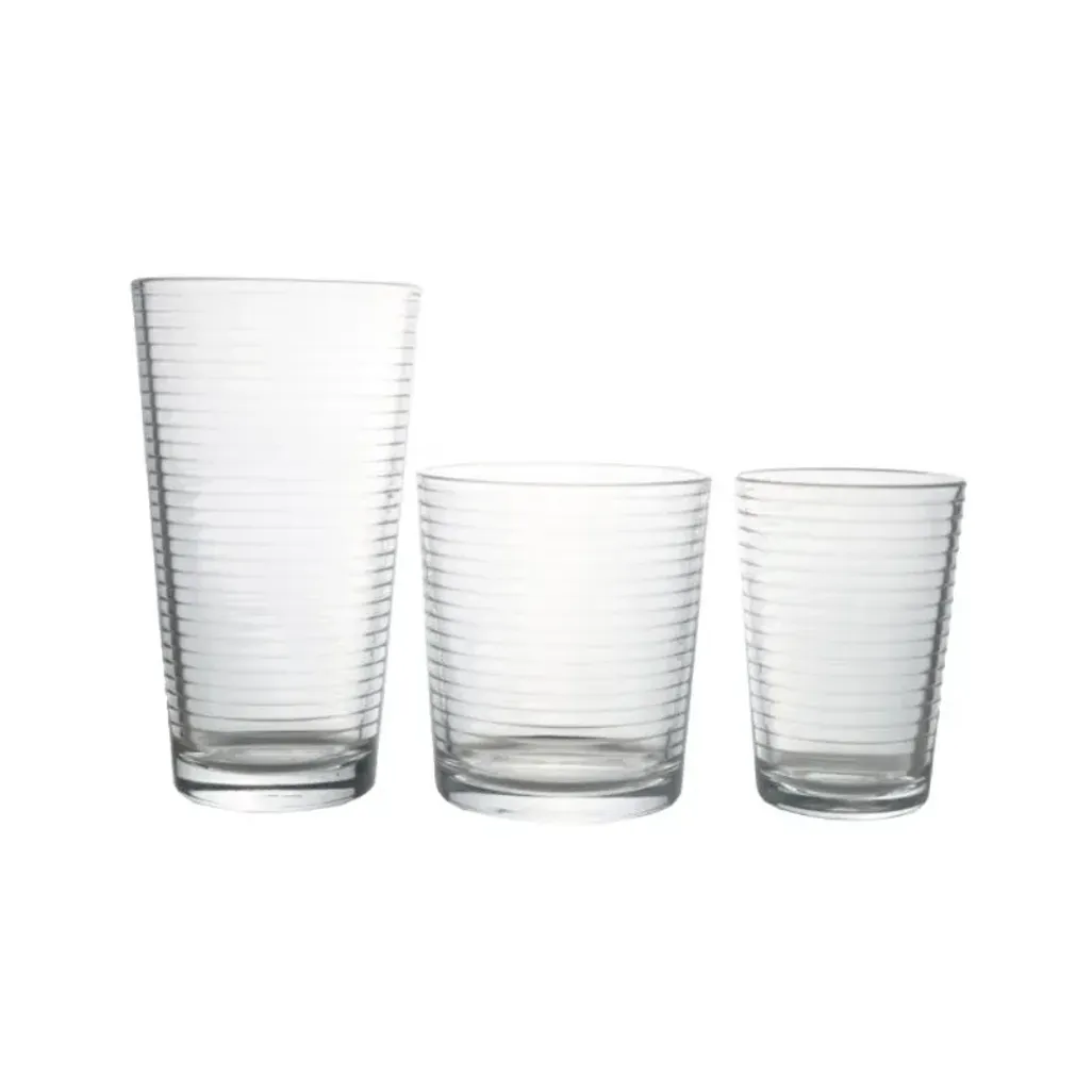 The Funkilines 12-Piece Tumbler Set consists of twelve glasses, that have 3 different sizes. It is the perfect gift, or it can be used for everyday uses around your home for serving water, fruit juice, and soft drinks.