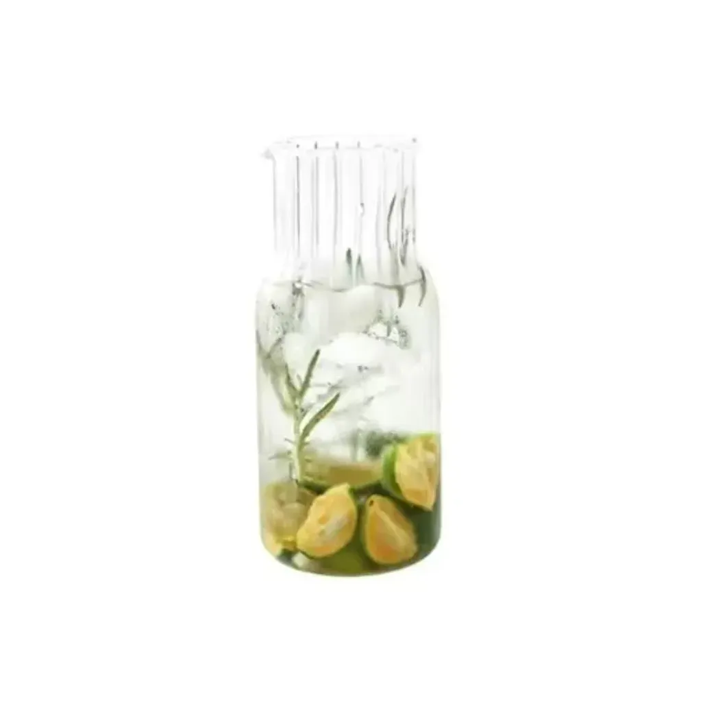 This Home4U Vertical Carafe Glass Set includes 1x carafe jug and 1x glass. It is not only useful, but it also features an enhanced grip. It presents a sophisticated design featuring vertical lines and grooves extending along the side.