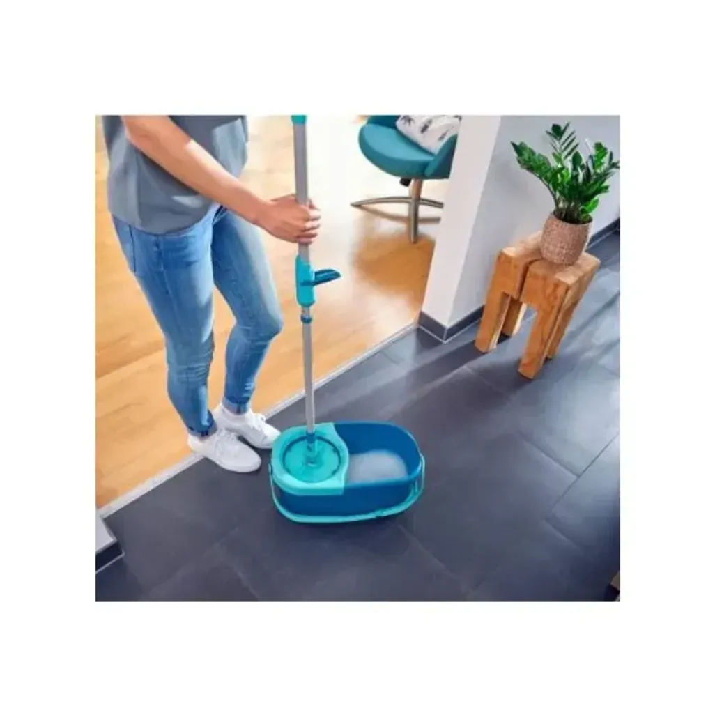 Have fun while cleaning with the Leifheit Disc Ergo Mop Set. It makes cleaning easier as you don't have to bend or put your hands into dirty water. This set consists of a micro duo mop head, a telescopic handle with drill mechanism and a 6L bucket with slingshot for you to carry around. The spin technology is designed for the dirt and water to be spun out when you place it in the wringer. Because it has a movable joint, the mop is able to lie completely flat so that you can reach and clean those hard-to-reach places under couches, dressers, cupboard and beds.