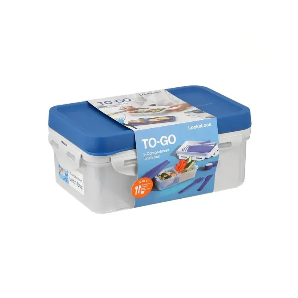 This LocknLock 1L To Go 3-in-1 Lunch Box will keep your meals fresh with its air and liquid tight lid. It has internal dividers that will allow you to separate your meals into portions. For a bonus, it also comes with a knife, fork and plate for your convenience. This 3-compartment lunch box is dishwasher safe, but be sure to use the top rack only. It can be used in the microwave (no lid), fridge and freezer. Rest assured, this lunch box is BPA-free, FDA and LFGB food safety approved.
