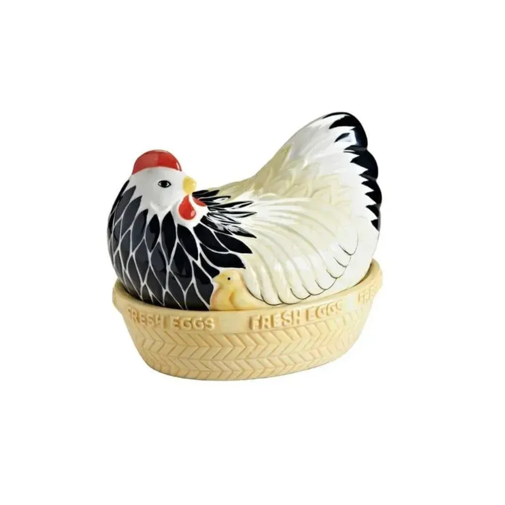 Constructed from chip-resistant, high-quality earthenware, the Mother Hen Egg Nest not only provides a safe and cozy storage space for eggs but also serves as an adorable kitchen tidy. Its robust material ensures durability while adding a touch of quaint elegance to your kitchen counter.