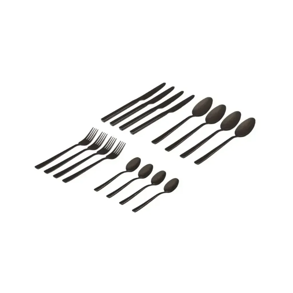Elevate your dining experience with the Legend Premium Black 16 Piece Cutlery Set, which is made of high-quality stainless steel and chrome and has rust-resistance properties for long-lasting use. It features a mirror-polished surface with smooth edges, and the knives have sharp serrated edges for easy cutting. The set consists of 4 table knives and forks, 4 tablespoons and 4 teaspoons.