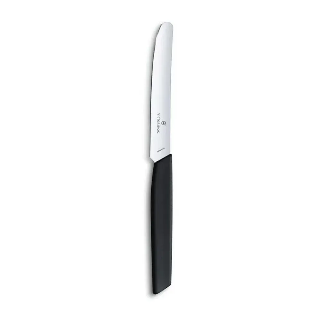 Enjoy cooking like a chef with the 11cm Victorinox Swiss Modern Black Table Knife. With a straight edge, it's ideal for fruits and veggies with a hard skin and soft core. A supersharp, wear-resistant blade for hassle-free cutting. Dishwasher safe.