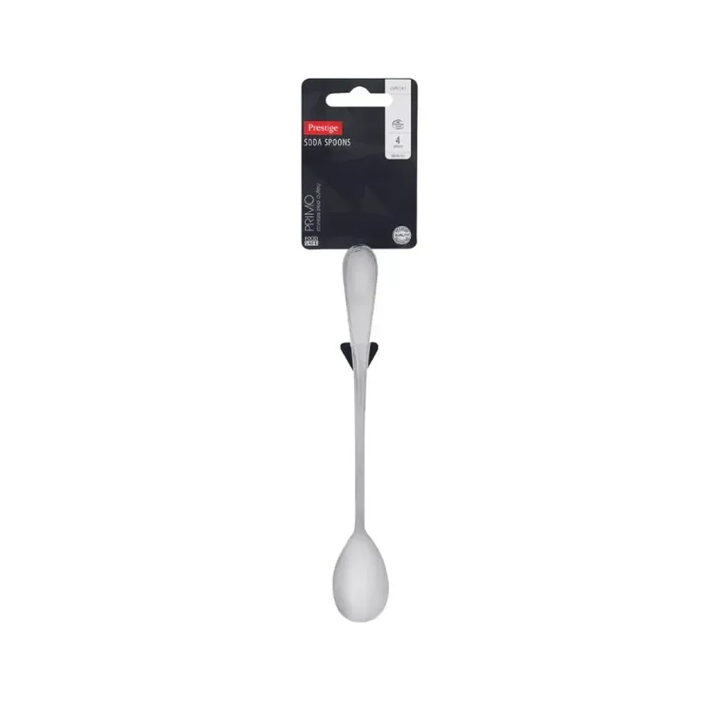 The Prestige Primo Soda Spoon Set consists of four stainless steel soda spoons, that can be used to stir drinks that are usually served in a tall glass.