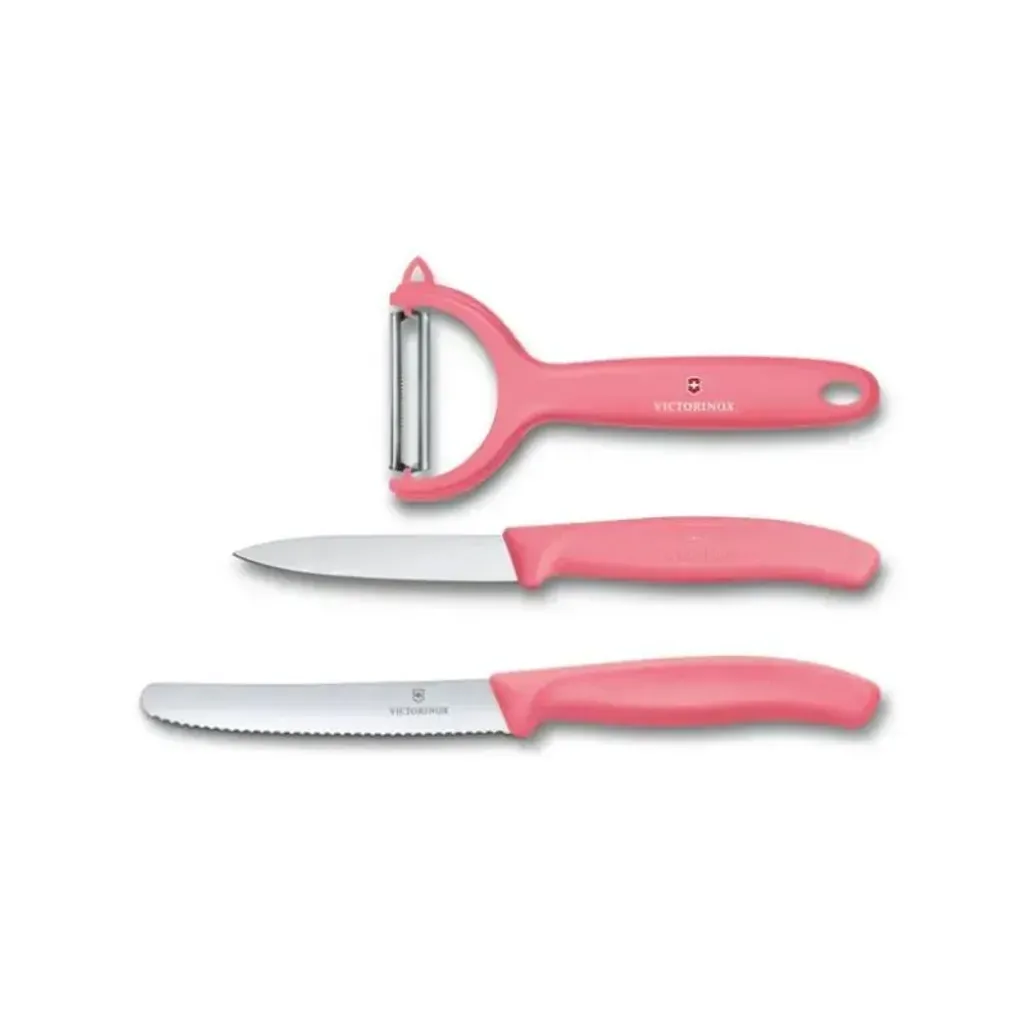 Crafted with Polypropylene and Stainless Steel, this Victorinox Swiss Classic Light Red Paring 3 Piece Set adds elegance to your kitchen utensils. Slice and dice effortlessly. Ideal for fruits and vegetables. Dishwasher safe.