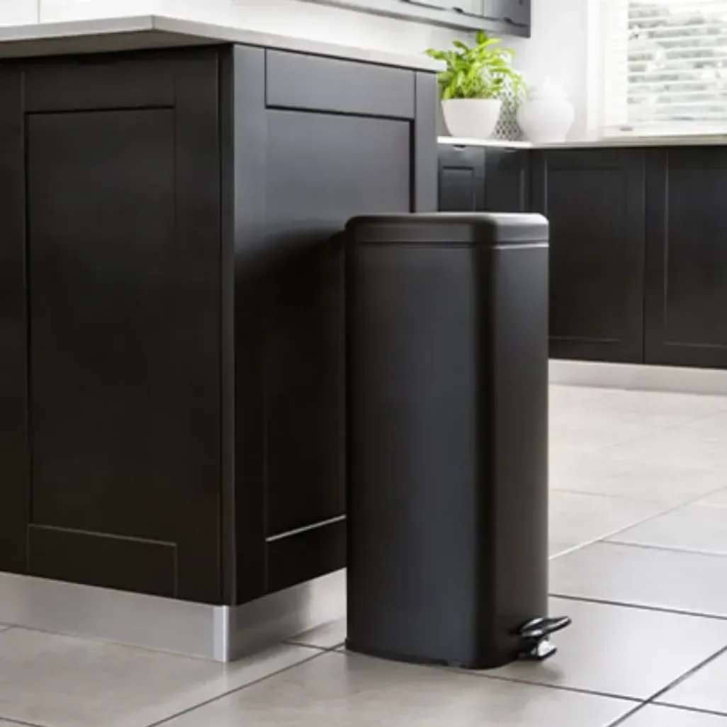 The Legend 30L Square Black Bin is made using polypropylene plastic and it includes a stainless steel pedal. This Legend bin has a matt black finish, a removable plastic inner bucket, and a carry handle for easier cleaning and emptying.