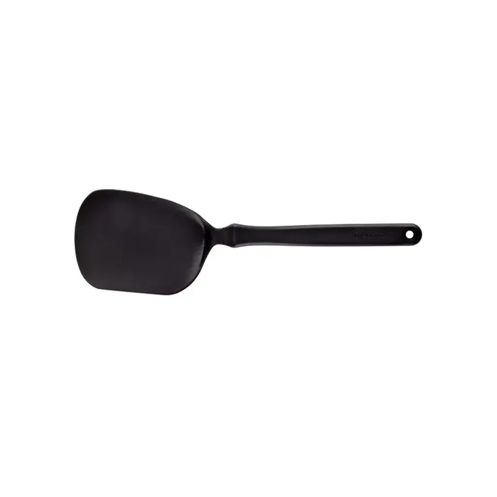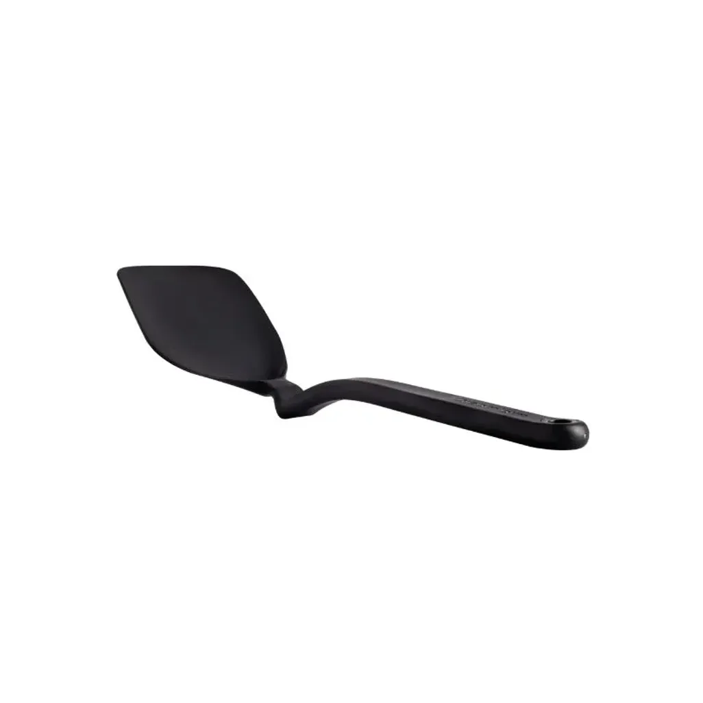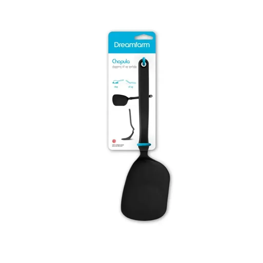 The Dreamfarm Black Mini Chopula Spatula is a perfect, smart and space-saving spatula designed for convenience. It has a thin, flexible head that easily slides under delicate foods and treats like cookies, eggs, brownies, waffles, pancakes and more. Flipping and lifting are effortless; the strong front edge allows light chopping and cutting, helping you portion foods directly in the pan.