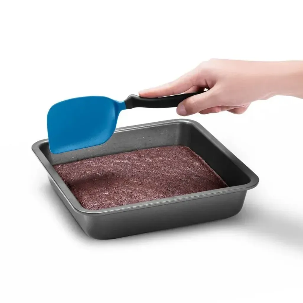 The Dreamfarm Classic Blue Mini Chopula Spatula is a perfect, smart and space-saving spatula designed for convenience. It has a thin, flexible head that easily slides under delicate foods and treats like cookies, eggs, brownies, waffles, pancakes and more. Flipping and lifting are effortless; the strong front edge allows light chopping and cutting, helping you portion foods directly in the pan.